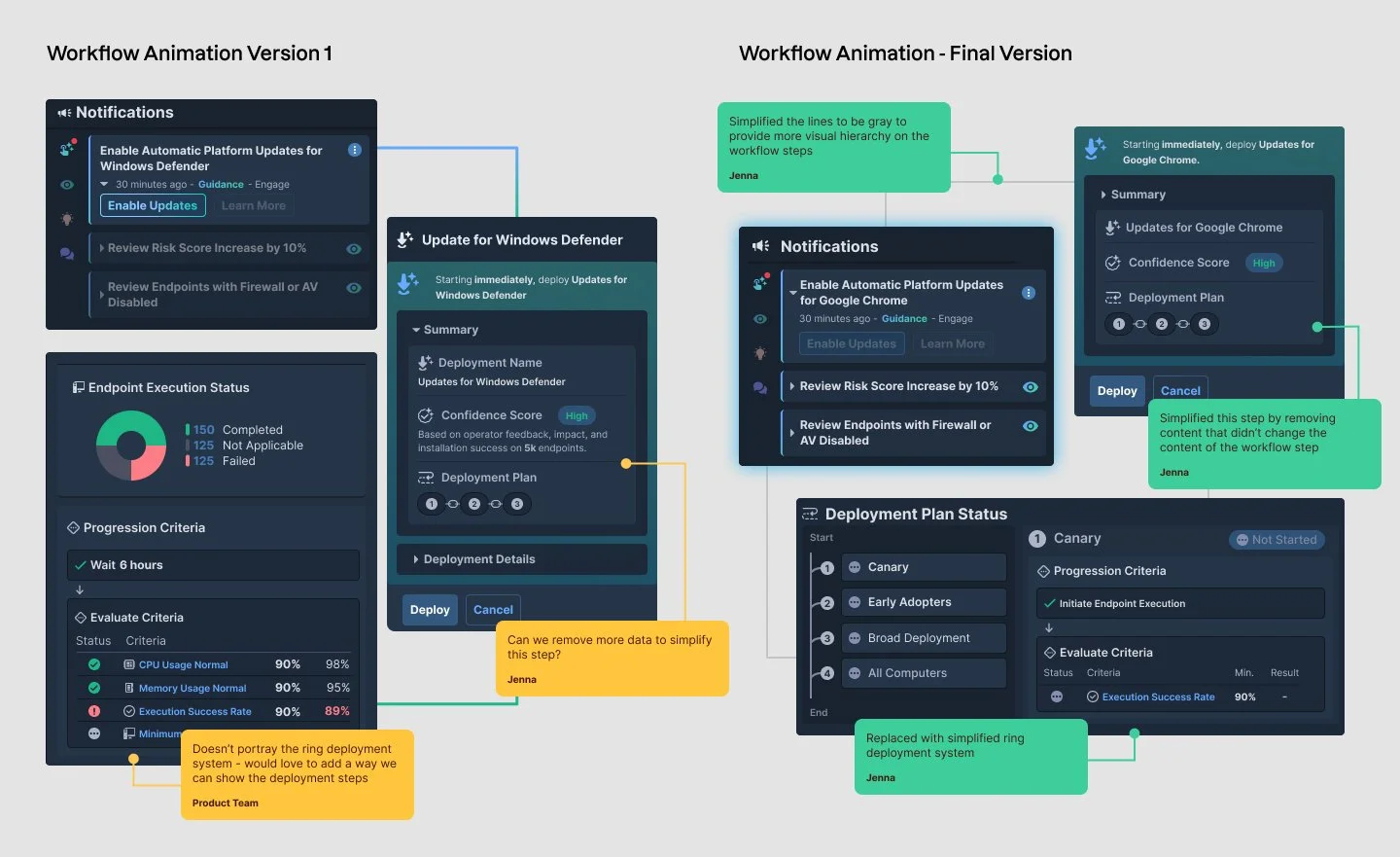 Once the system was in place, we aligned on a Tier 2 approach for visualizing the autonomous control workflow. I partnered closely with the AI product team and our platform design team to ensure the visualization was both accurate and approachable. This involved breaking down individual features, prototyping each component, and connecting them into a cohesive flow within Figma.