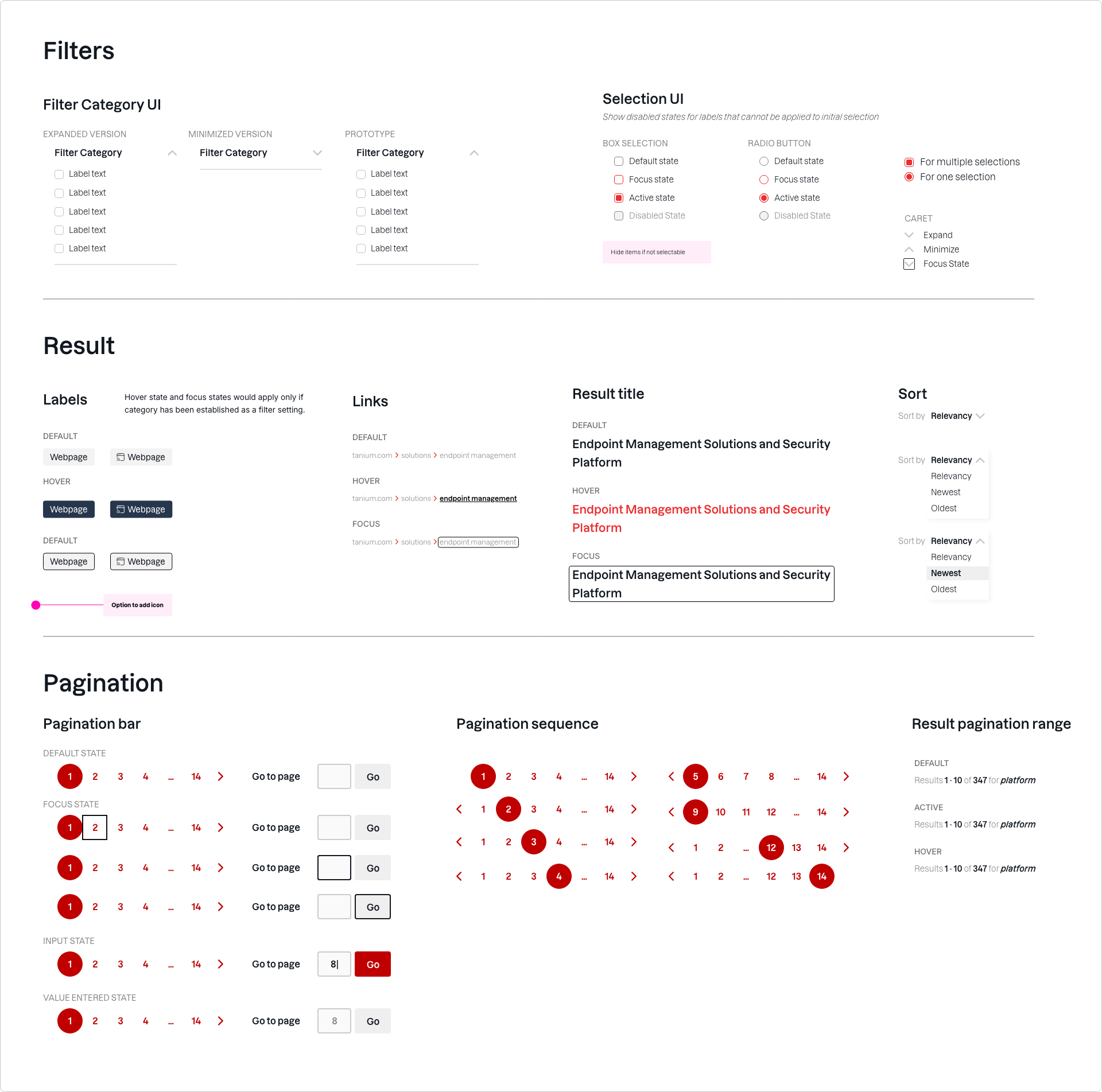 Filters, result, pagination states