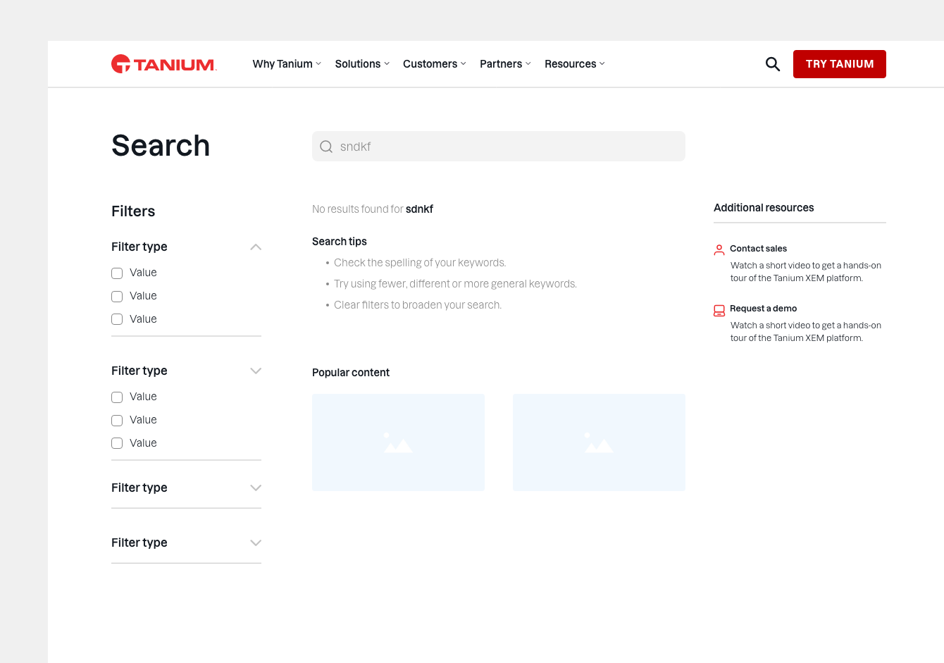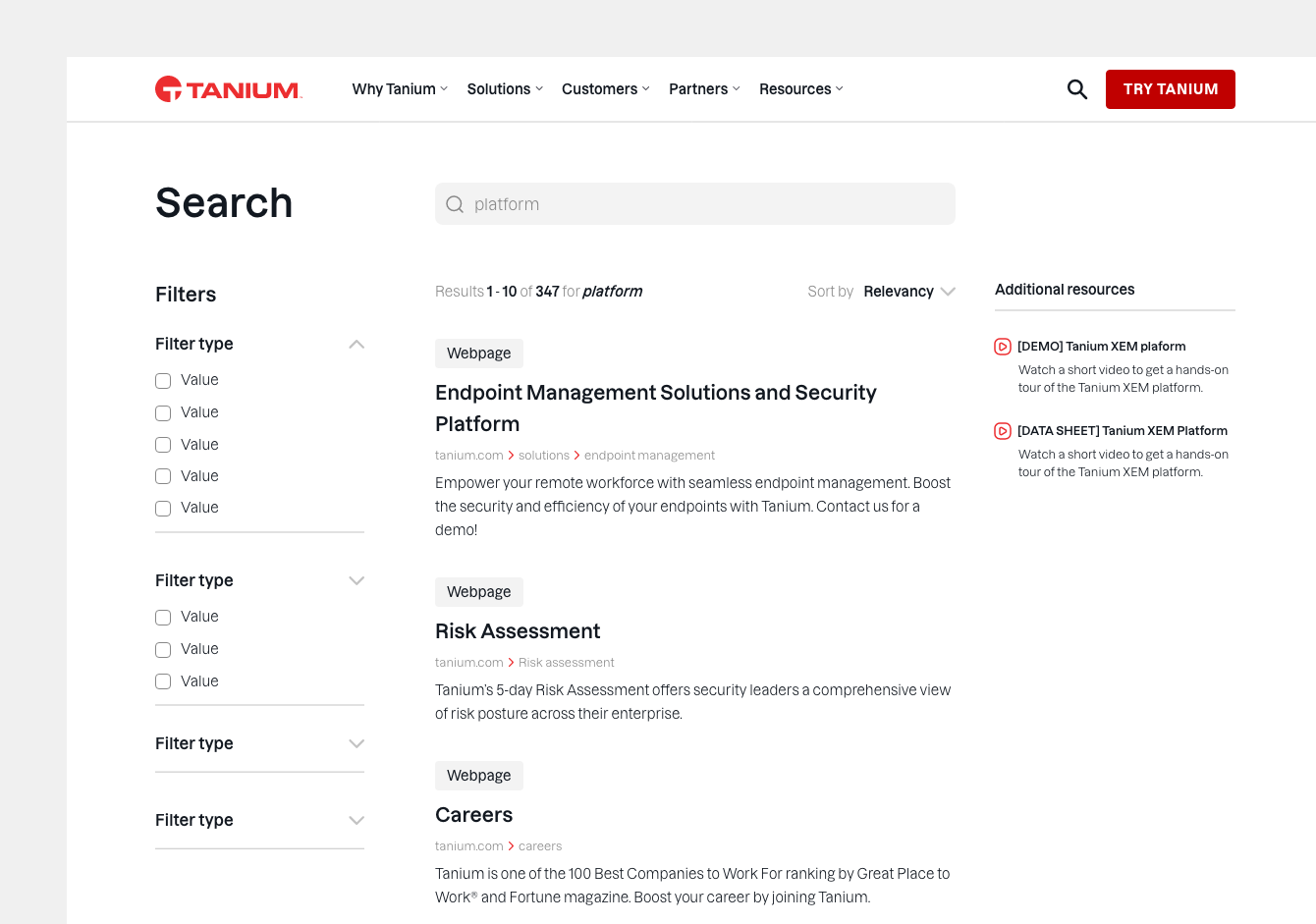 Evaluation of Tanium’s site search (scroll within the embedded frame to view)